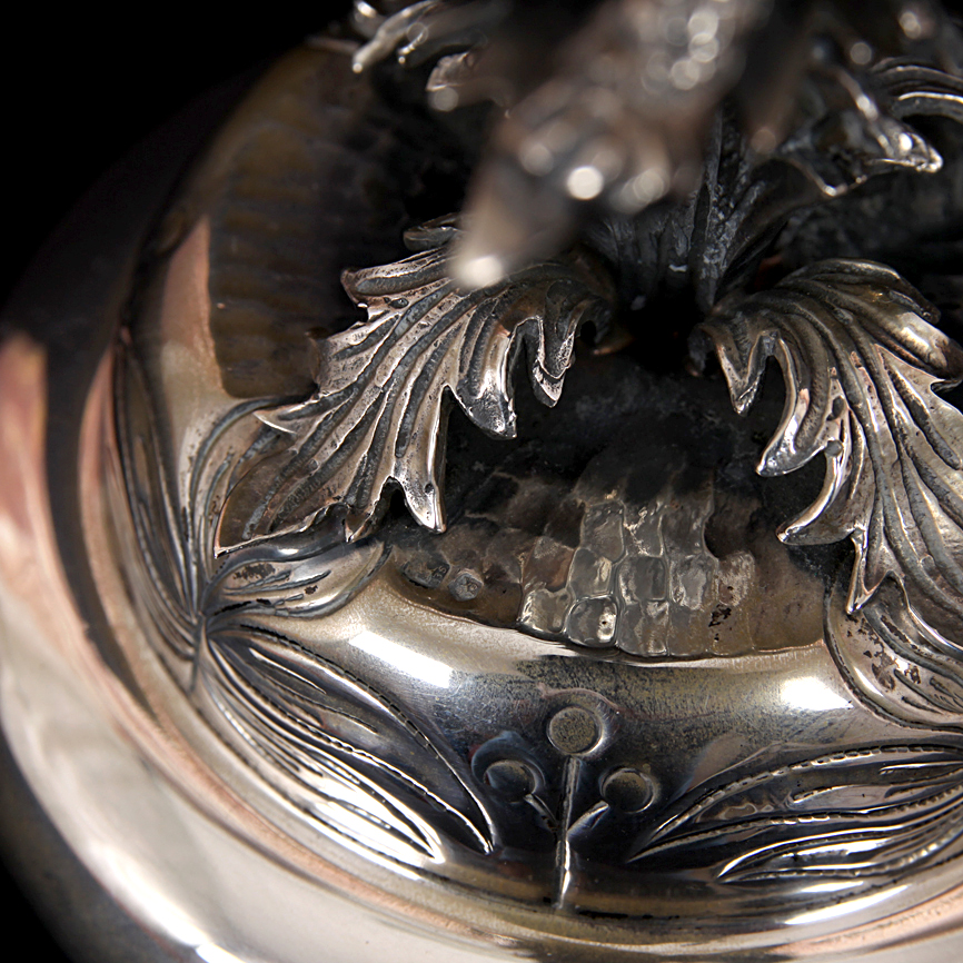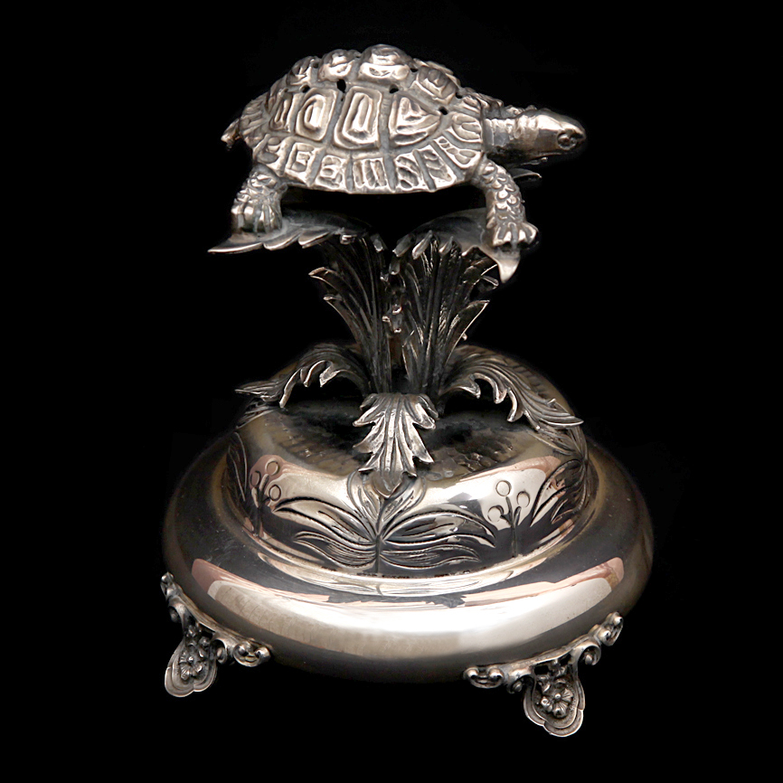 Paliteiro em prata portuguesa com imagem de uma uma tartaruga.